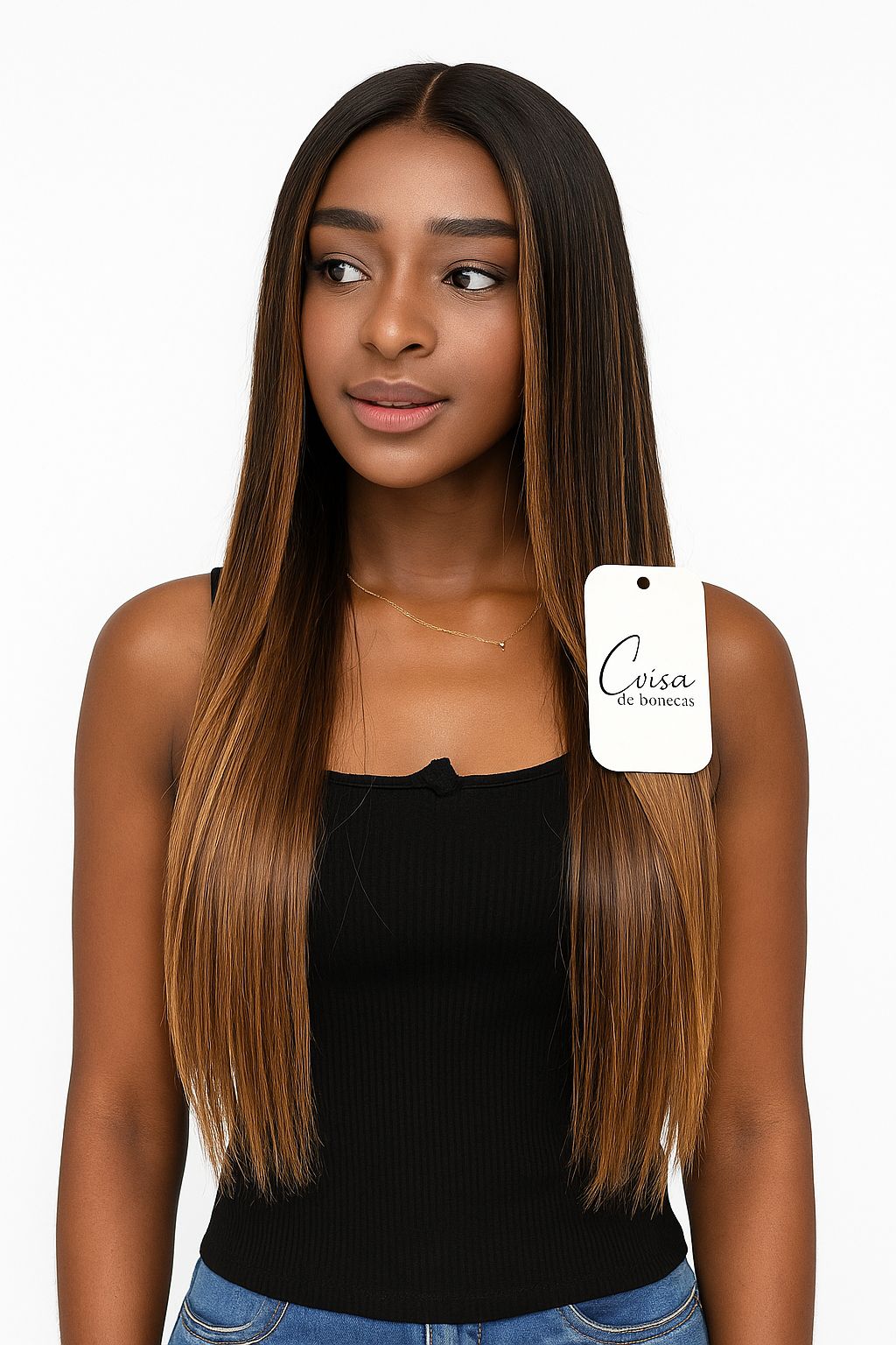 Feita com cabelo 100% humano malasiano e iluminação personalizada.